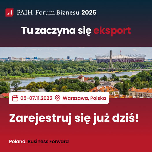 W imieniu Polskiej Agencji Inwestycji i Handlu S.A. zapraszamy Państwa do udziału w kolejnej edycji PAIH Forum Biznesu, które odbędzie się w dniach: 05–07 listopada 2025 r. na PGE Narodowym w Warszawie.